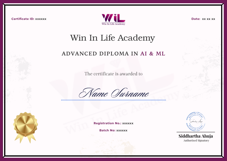 Note: To secure certification in AI and ML, you must successfully complete the training from Win in Life Academy.