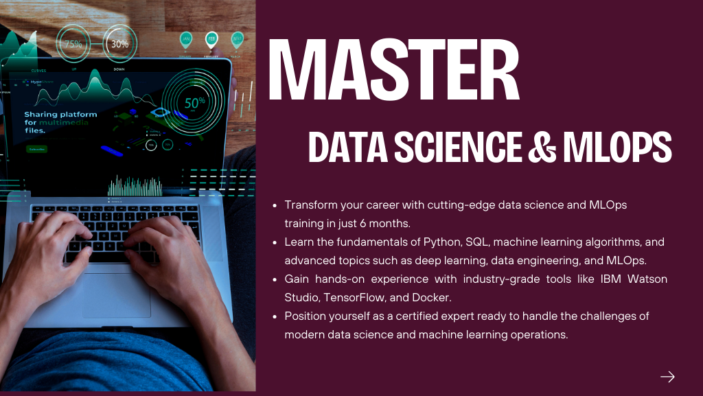 The Data Science and MLOps professional certificate includes integrated learning components delivered in collaboration with IBM. These modules feature guided hands-on labs accessible through the IBM Learning Management System, bringing industry-grade data science, machine learning, and MLOps practices directly into the training experience. With IBM’s global expertise and real-world scenario-driven learning, students graduate with enhanced employability and the practical skills needed to excel in advanced data science, machine learning operations, and generative AI roles.