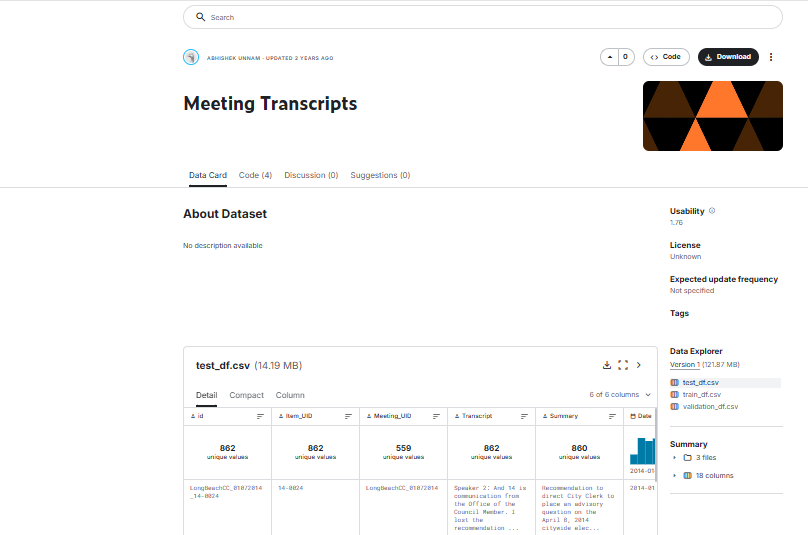 Dataset: Meeting Transcripts Dataset — Kaggle
