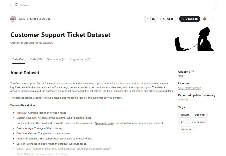Dataset: Customer Support Ticket Dataset — Kaggle